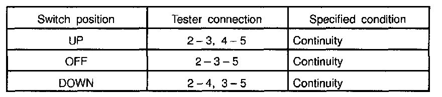 If continuity is not as specified, replace the switch.