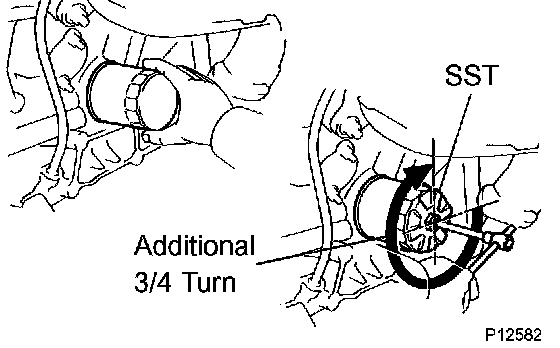 c. Lightly screw the oil filter into place, and tighten it until the gasket contacts the seat.