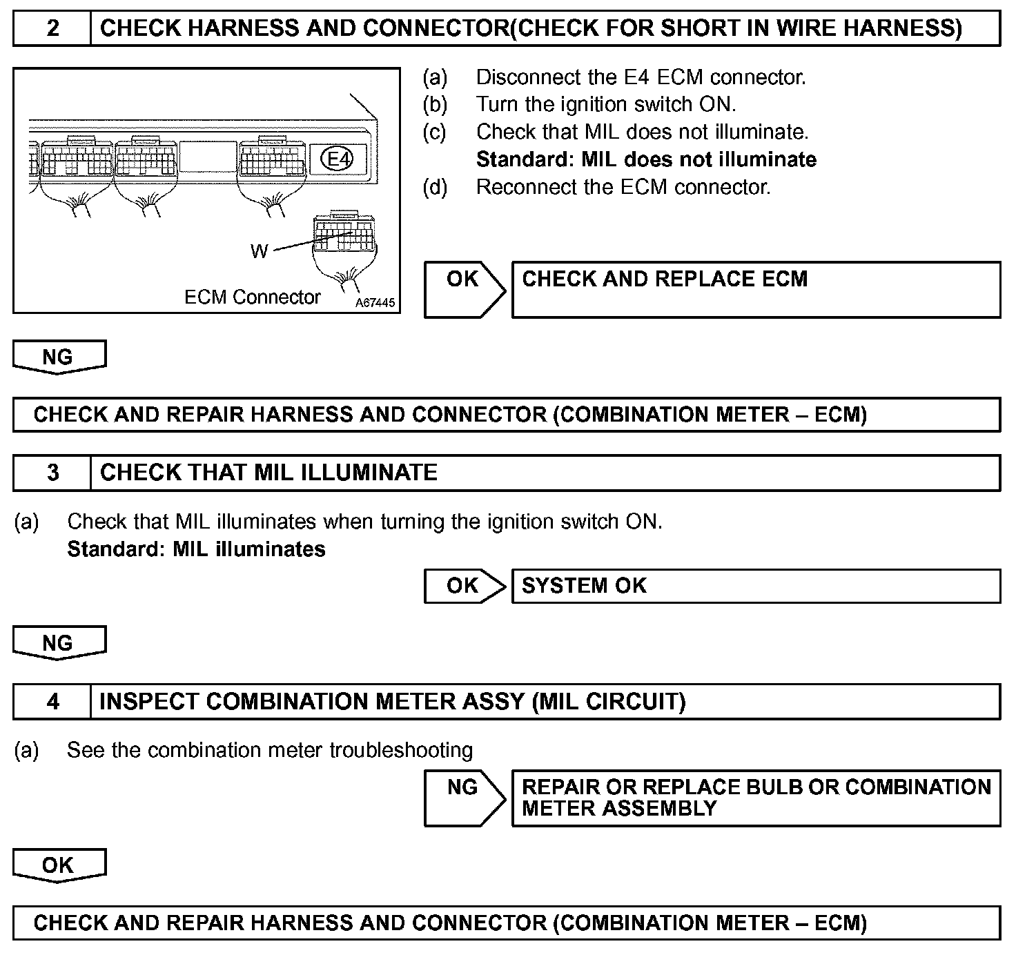 If the ECM detects a trouble, the MIL illuminates. At this time, the ECM records a DTC in the memory.