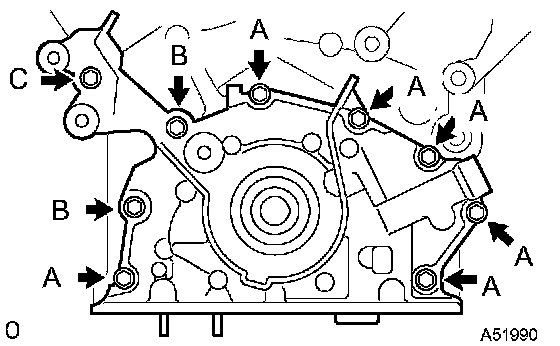 Install the oil pump with the 9 bolts. Tighten the bolts uniformly in several steps.