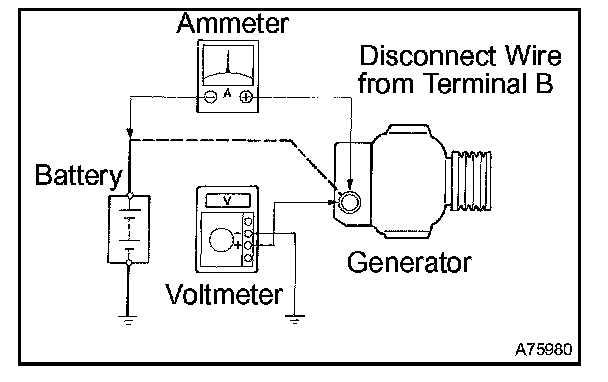 1. Disconnect to the wire from terminal B of the generator and connect it to the negative (-) lead of the ammeter.