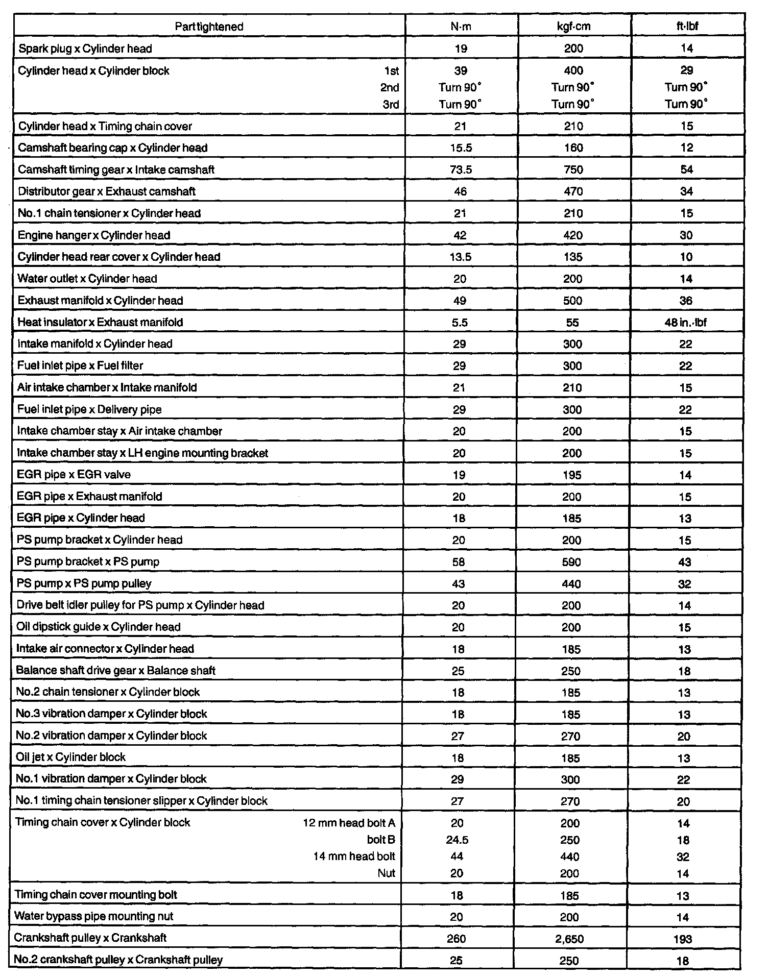 TORQUE SPECIFICATIONS