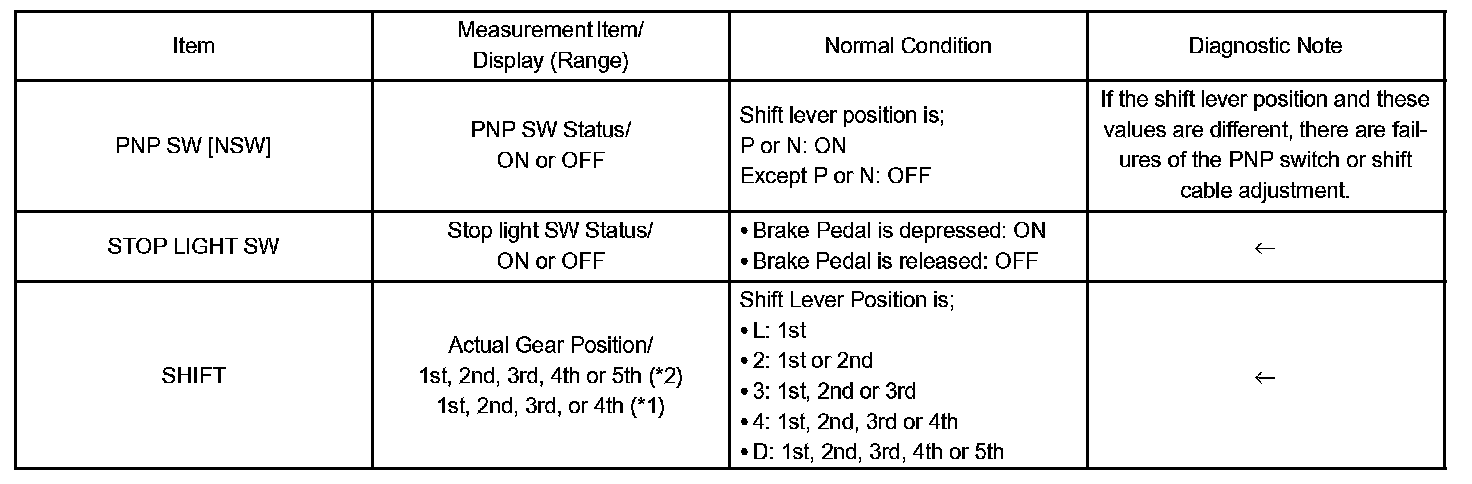 DATA LISTHINT: According to the DATA LIST displayed by the OBD II scan tool or Hand-held tester, you can read the value of the switch, sensor, actuator and so on without parts removal. Reading the DATA LIST as the first step of troubleshooting is one of the methods to shorten the labor time.