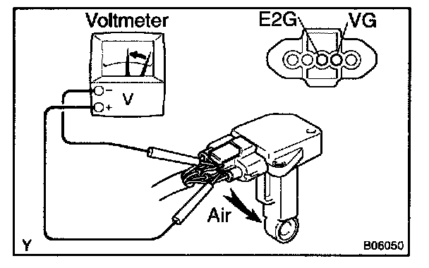 b. Using a voltmeter, connect the positive (+) tester probe to terminal VG, and negative (-) tester probe to terminal E2G.