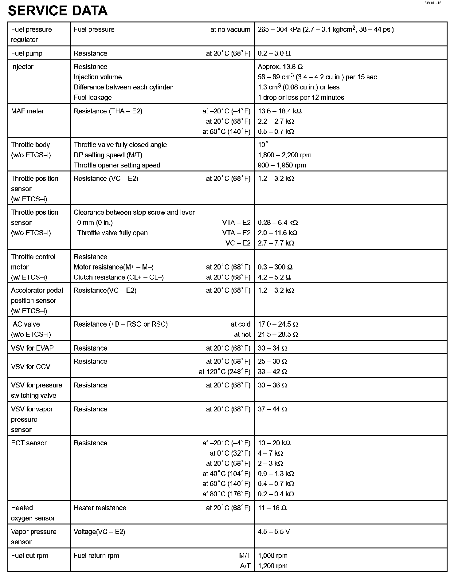 SFI (5VZ-FE) - Service Data: