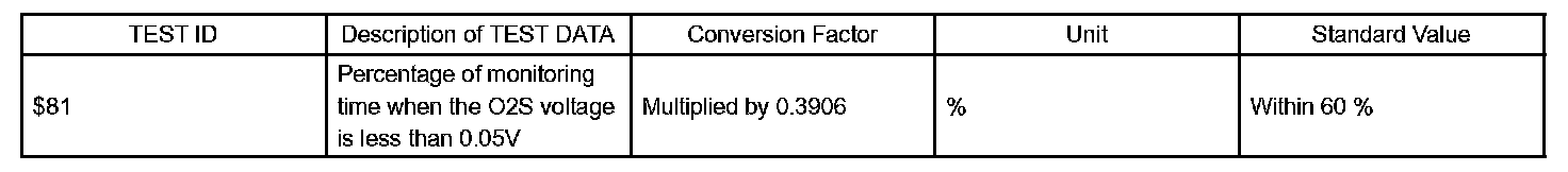 - Find the Conversion Factor value of "TIME $81" in the O2S TEST RESULT chart. 0.3906 is specified for $81 in this chart.