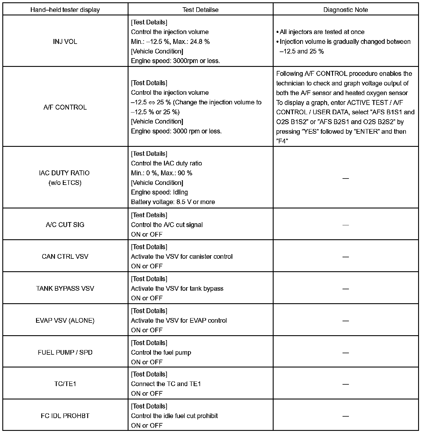 ACTIVE TESTHINT: Performing the ACTIVE TEST using the hand-held tester or the OBD II scan tool allows the relay, VSV, actuator and so on to operate without parts removal. Performing ACTIVE TEST as a first step of troubleshooting is one method to shorten diagnostic time.