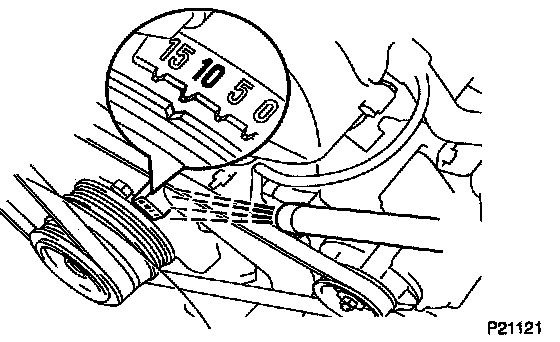 HINT: The timing mark moves in a range between 3° and 19°.