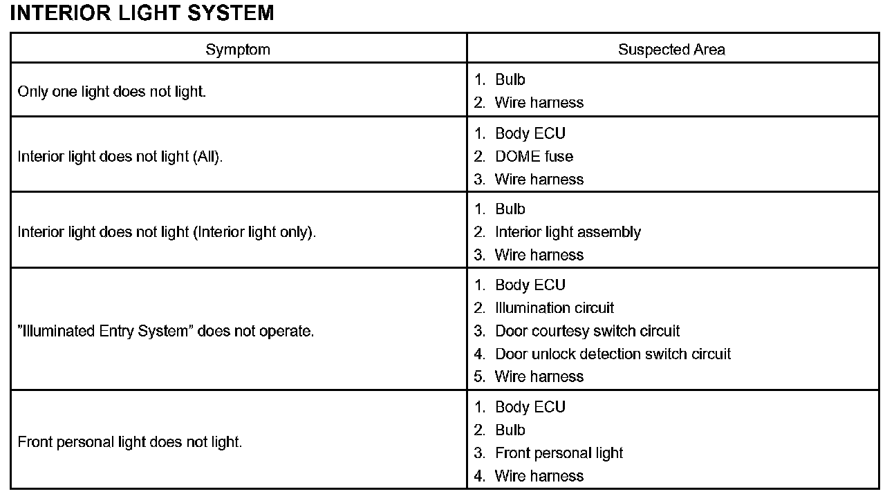 Problem Symptoms Table - Interior Light System: