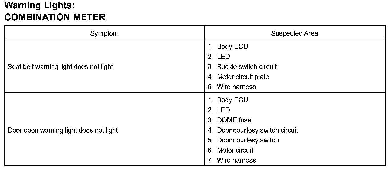 Problem Symptoms Table - Combination Meter: