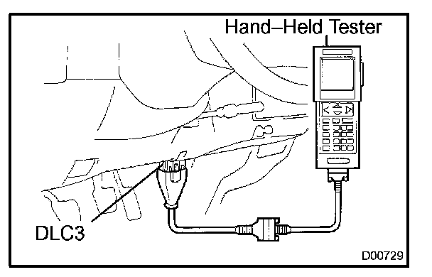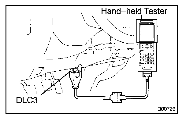 1. Connect the OBD II scan tool or hand-held tester to the DLC3.