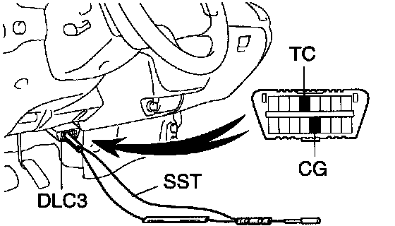 INSPECT IGNITION TIMINGa. Using SST, connect terminals TC and CG of the DLC3.