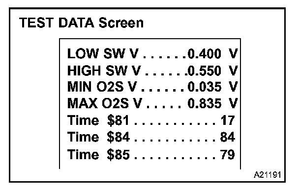 If the TEST DATA value appearing on the scan tool is out of the standard value, the O2S is malfunctioning. If it is within the standard value, the O2S is functioning normally. However, if the value is on the borderline of the standard value, the O2S may malfunction very soon.