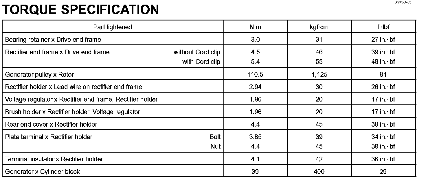 Charging - Torque Specification: