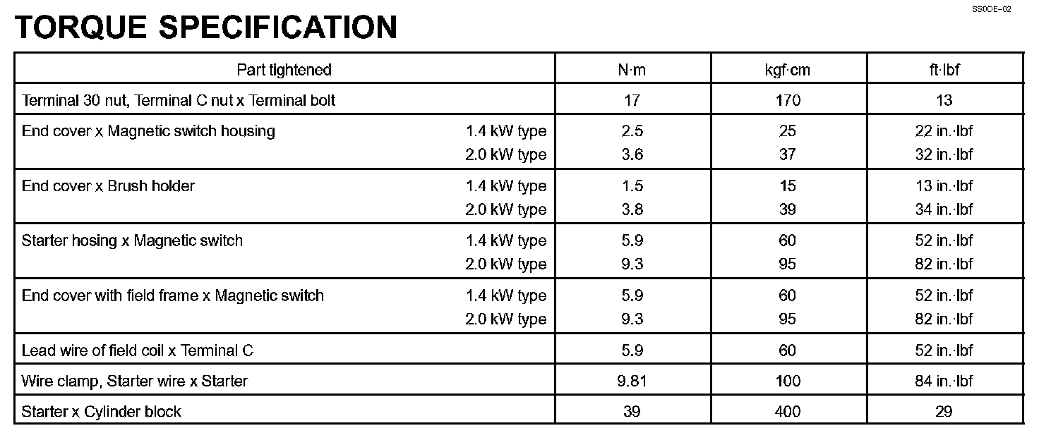 Starting - Torque Specification: