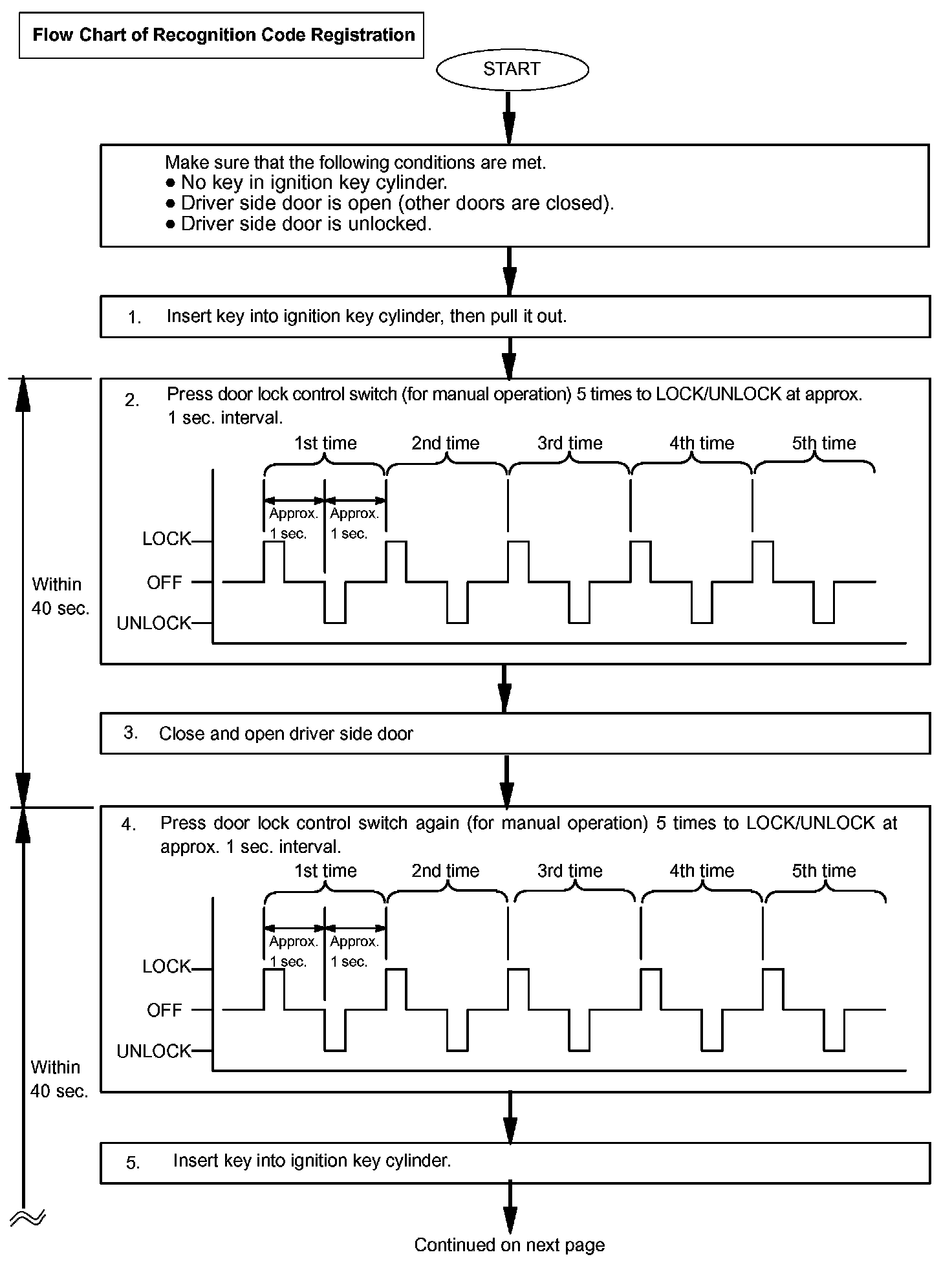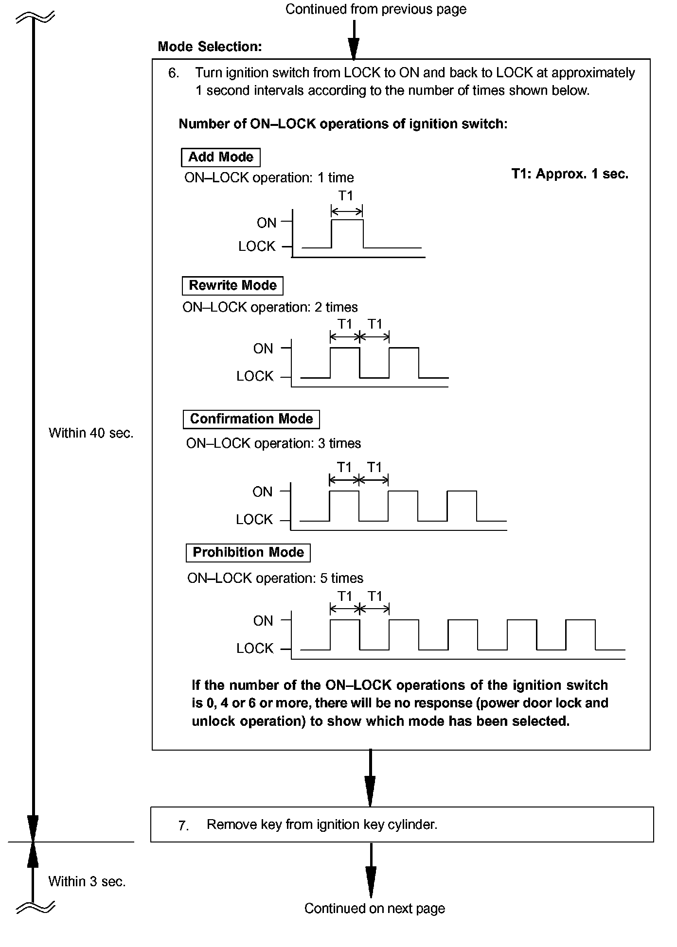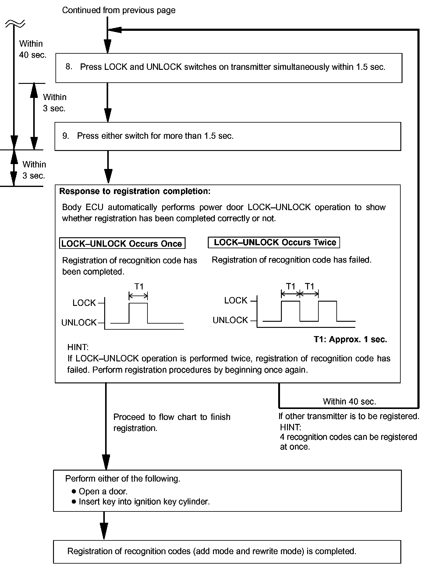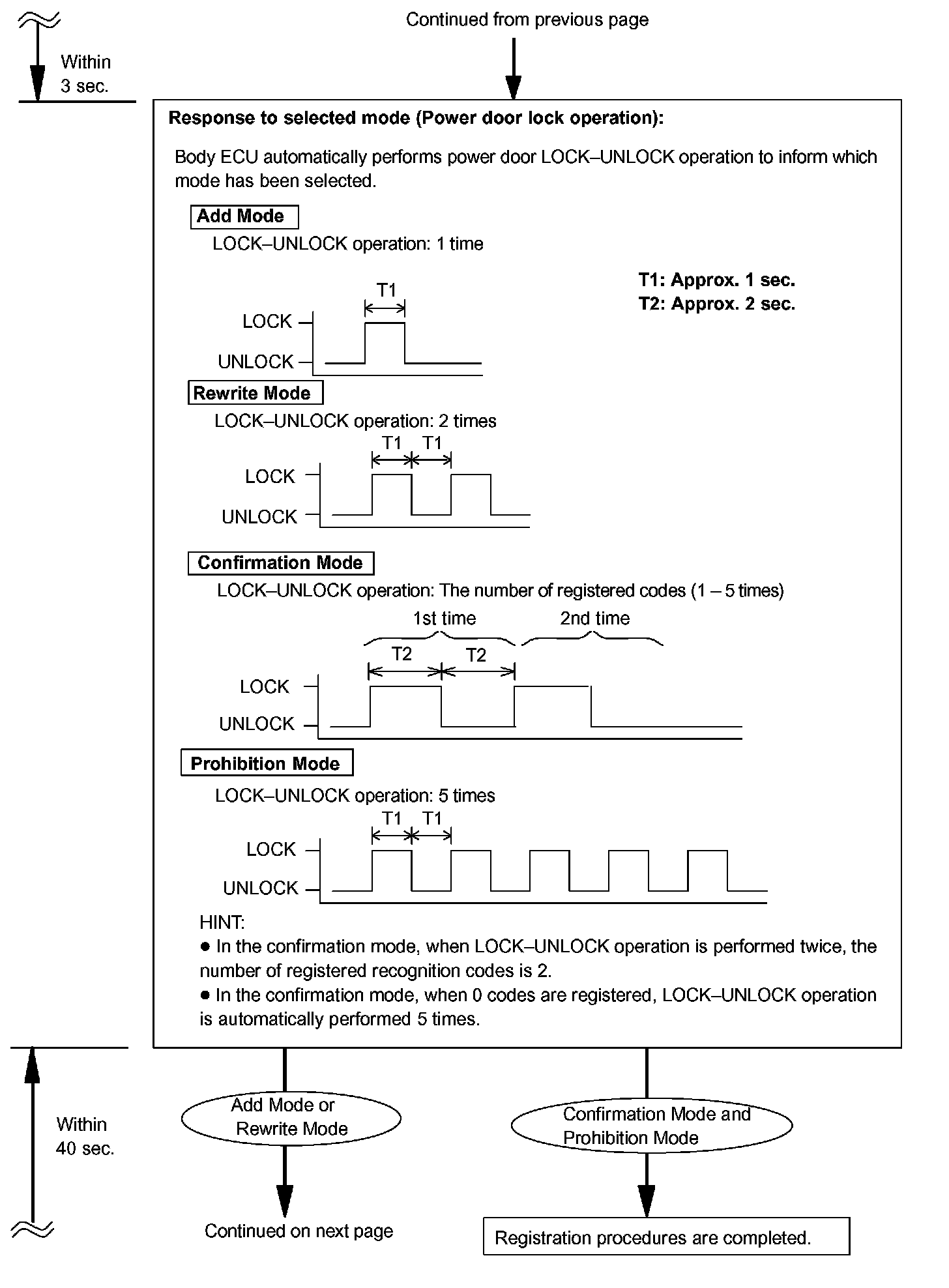 - The add mode is used to register new recognition codes while still retaining codes already registered. This mode is used when a new transmitter is added. If the number of registered codes exceeds 4, the previously registered codes will be erased in order, starting from the first registered code.