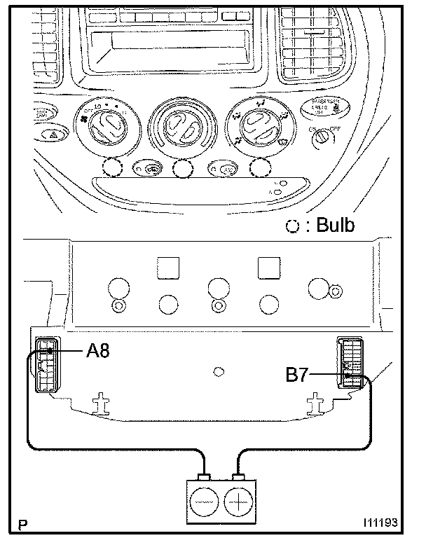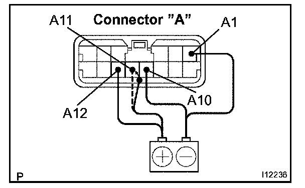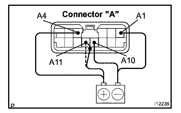 (c) Connect the positive (+) lead from the battery to terminal All and negative (-) lead to terminal AlO, then check that the indicator dimes.
