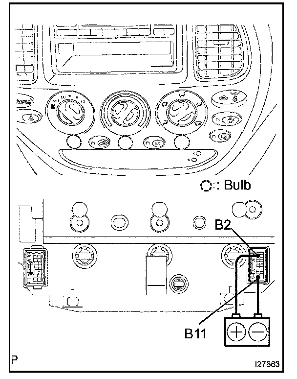 Connect the positive (+) lead from the battery to terminal B2 and negative (-) lead to terminal Bli then check that the illuminations lights up.