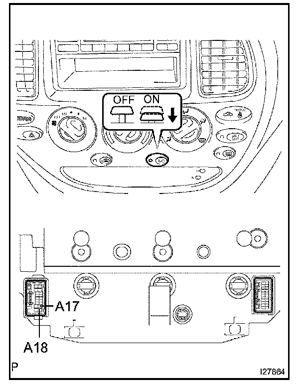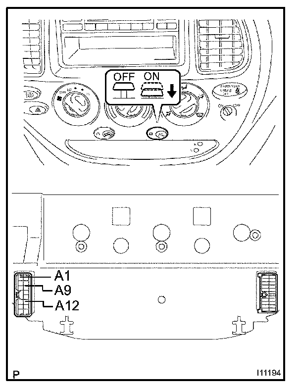(b) Push the A/C button in and check that the A/C indicator lights up.