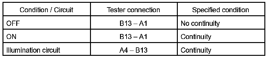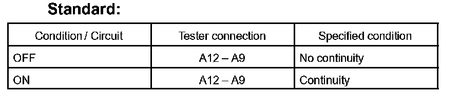 4. Access cab, Standard cab: INSPECT A/C SWITCH CONTINUITY