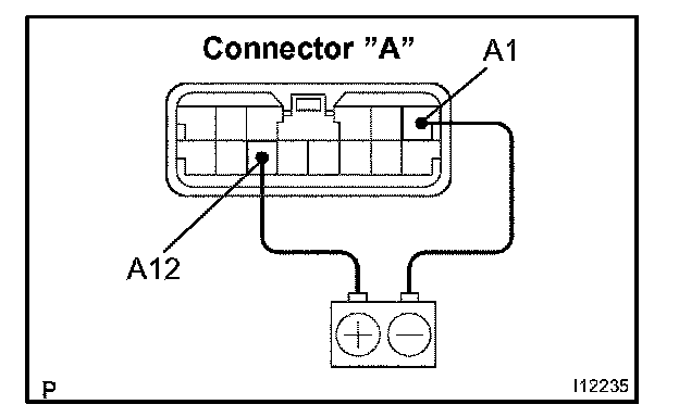 (a) Connect the positive (+) lead from the battery to terminal A12 and negative (-) lead to A1.