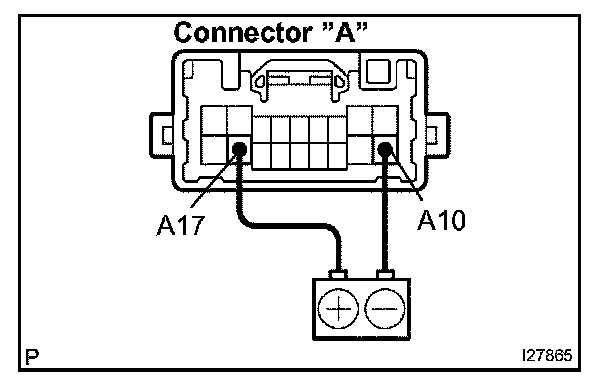 (a) Connect the positive (+) lead from the battery to terminal A17 and negative (-) lead to A1O.