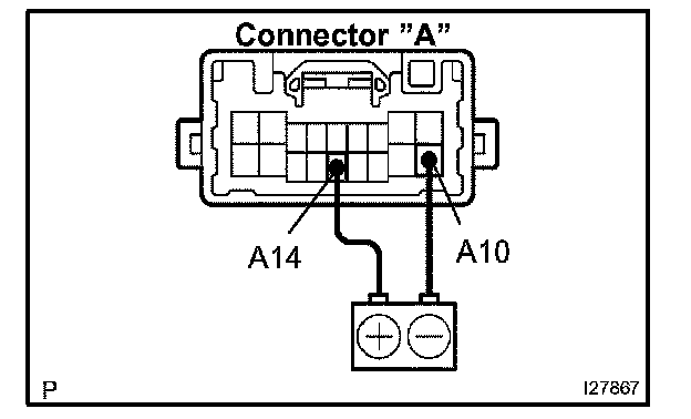 (a) Connect the positive (+) lead from the battery to terminal A14 and negative (-) lead to A1O.