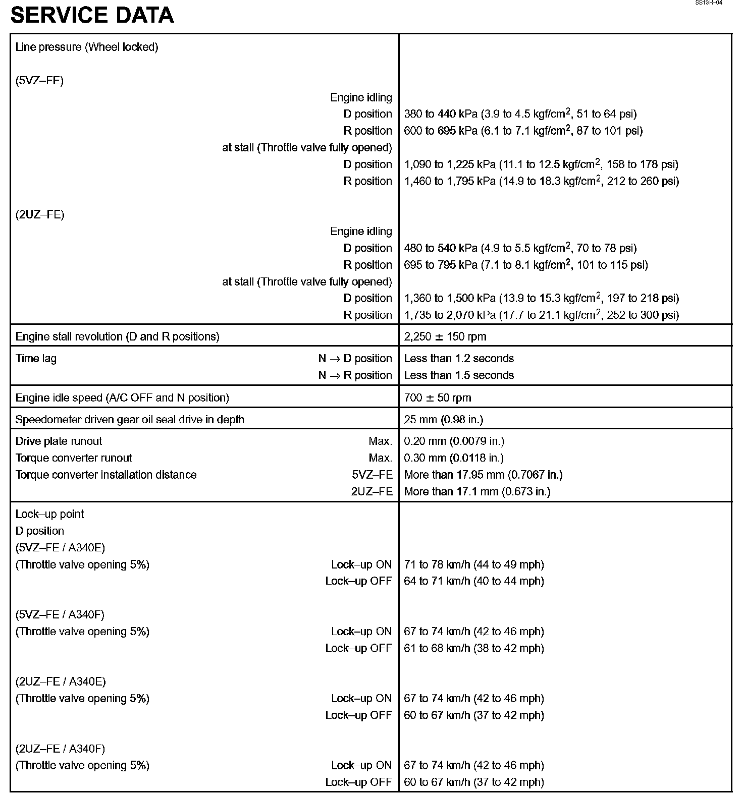 Automatic Transmission - Service Data Part 2: