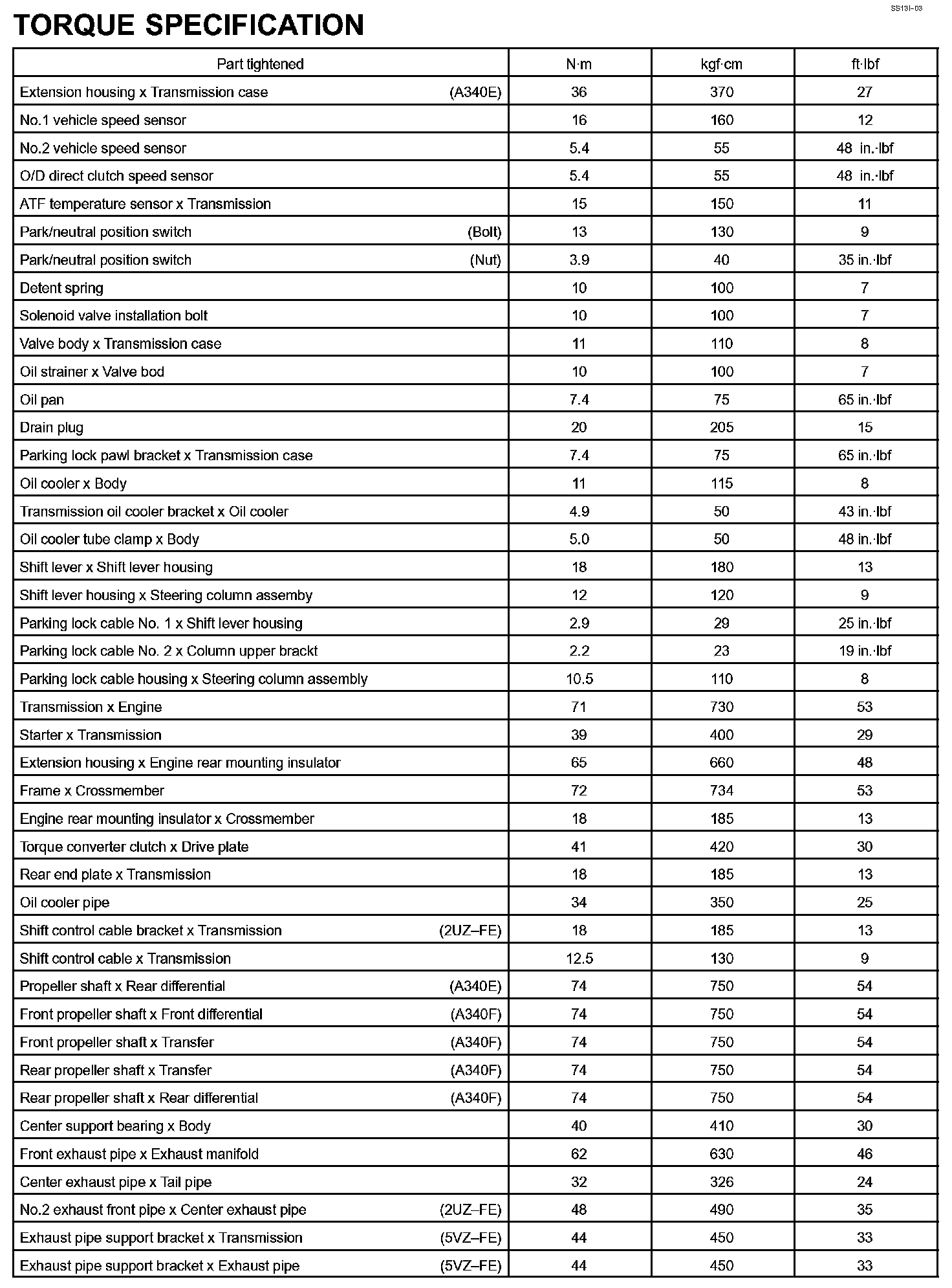 Automatic Transmission - Torque Specification Part 1: