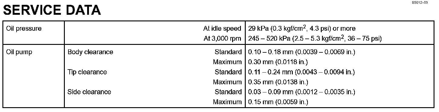 Lubrication - Service Data: