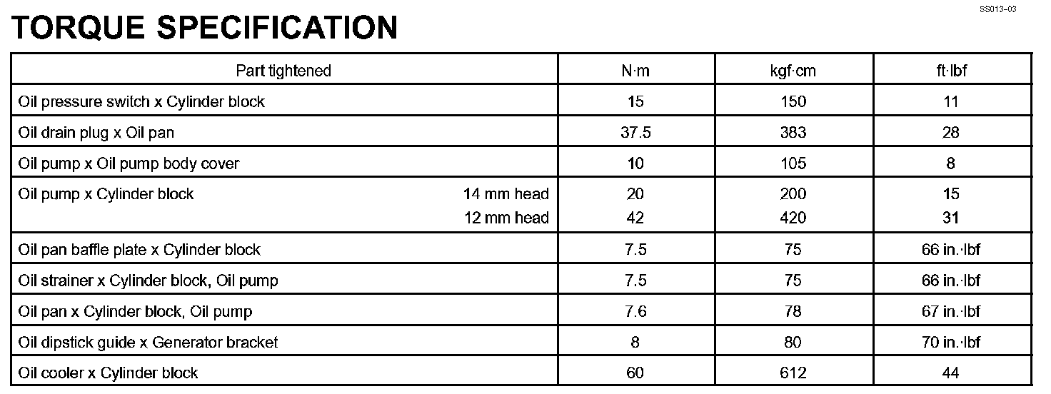 Lubrication - Torque Specification: