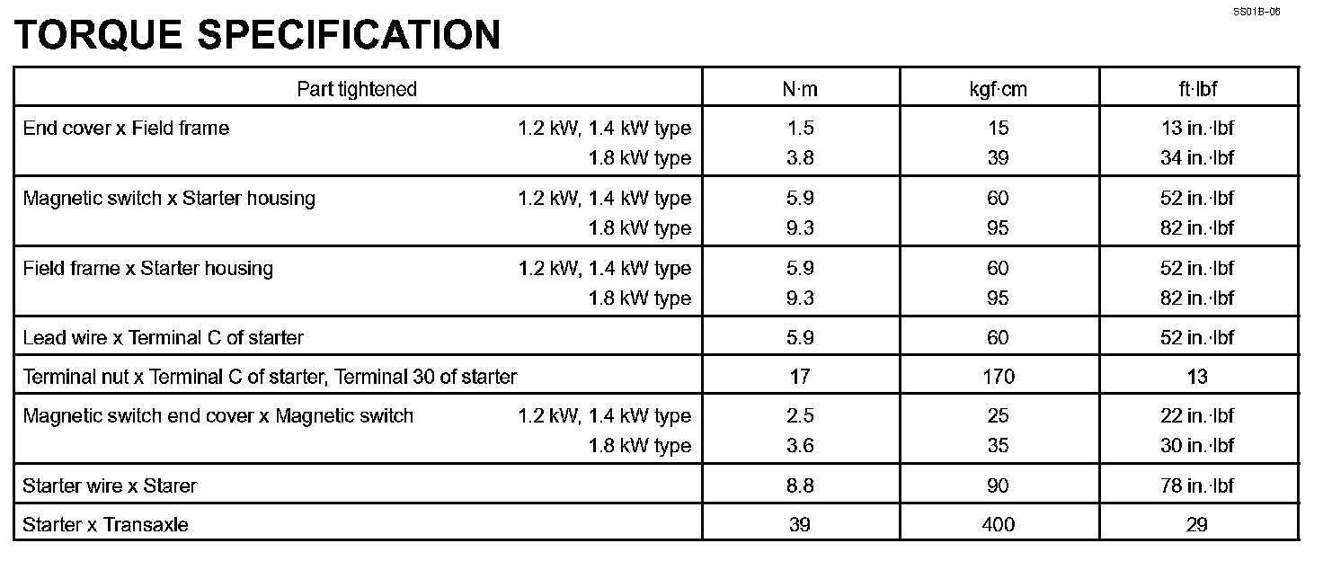 Starting - Torque Specification: