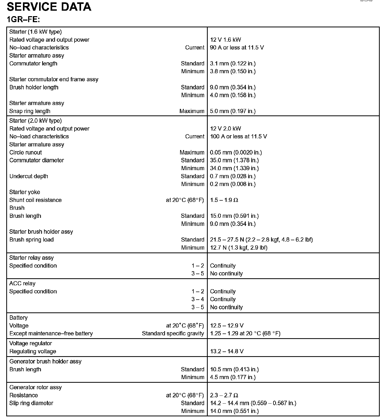 Starting & Charging - Service Data:
