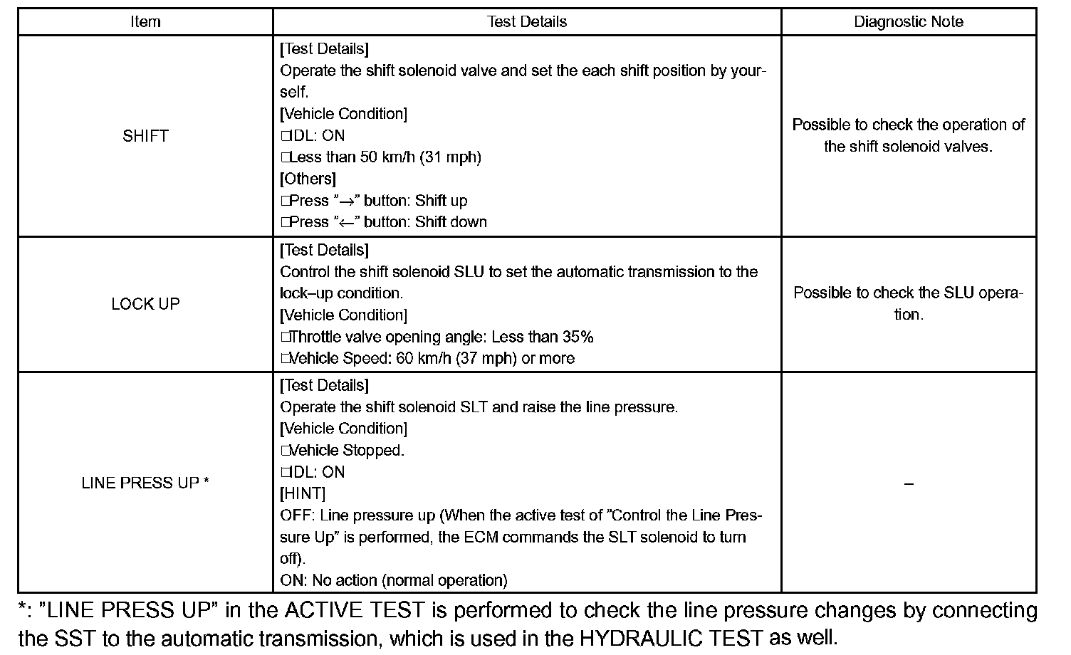 HINT: The pressure values in ACTIVE TEST and HYDRAULIC TEST are different from each other.