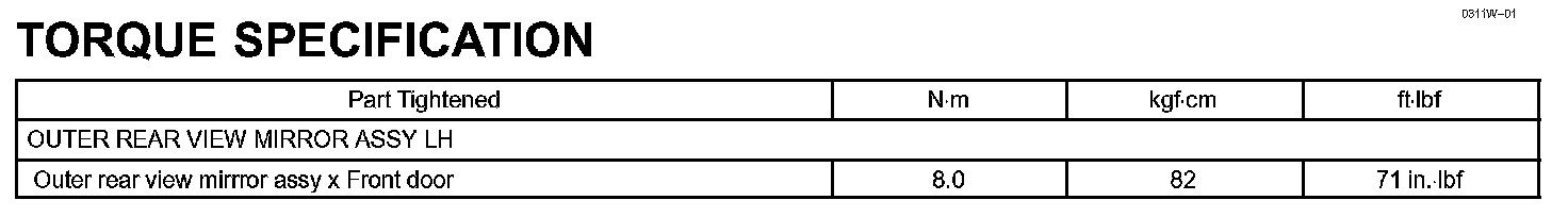 Windshield/Windowglass/Mirror - Torque Specification:
