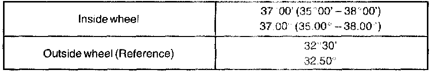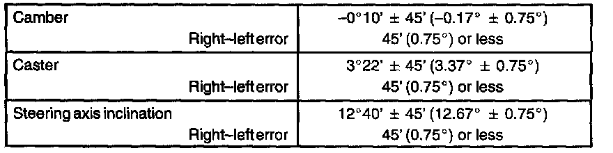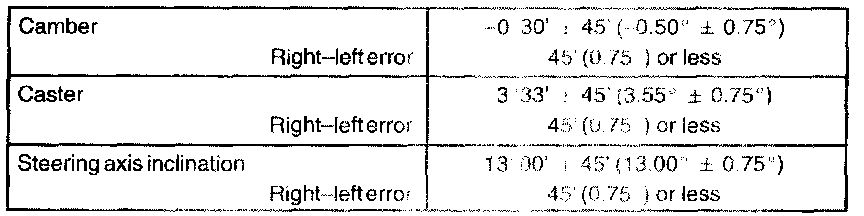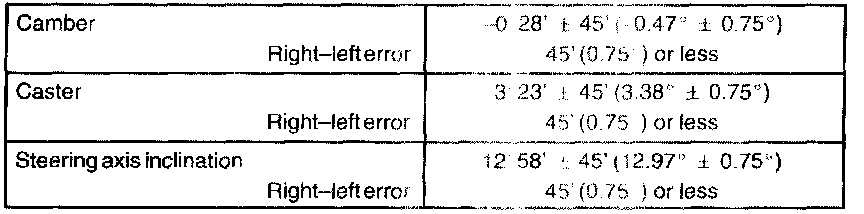 If the steering axis inclination is not as specified after camber and caster have been correctly adjusted, recheck the steering knuckle and front wheel for distortion or looseness.