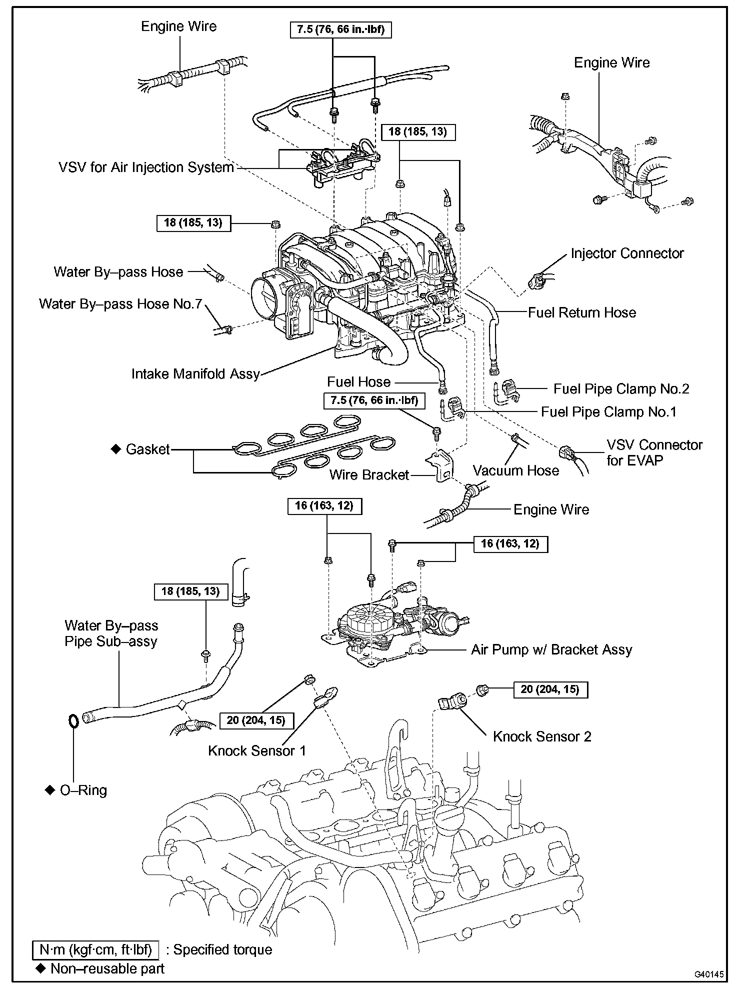 g. Connect the wire protector to the intake manifold and cylinder heads with the bolt and nut.