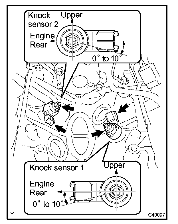 a. Install the 2 knock sensors with the 2 nuts as shown in the illustration.