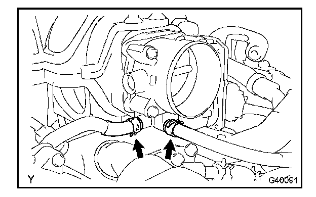 a. Disconnect the 2 water by-pass hoses from the throttle body.