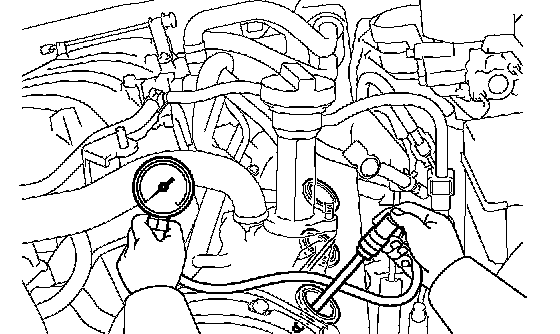 3 While cranking the engine, measure the compression pressure.