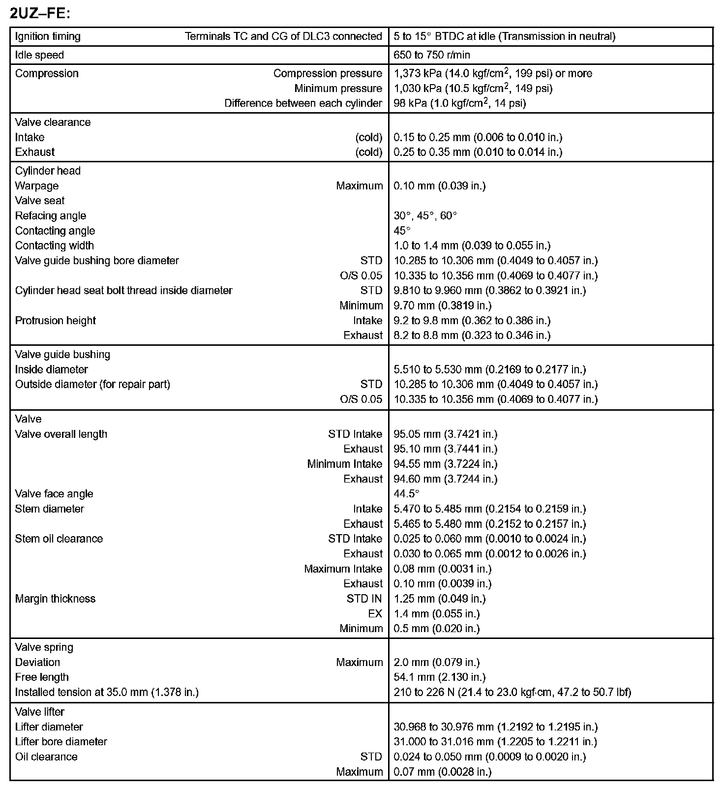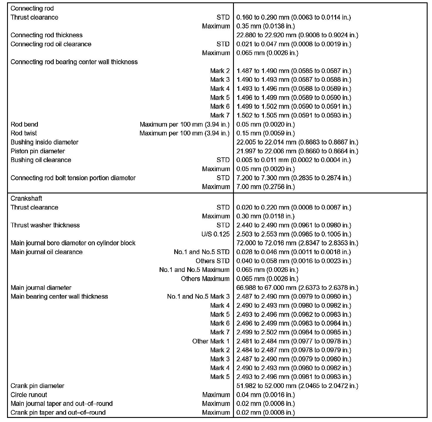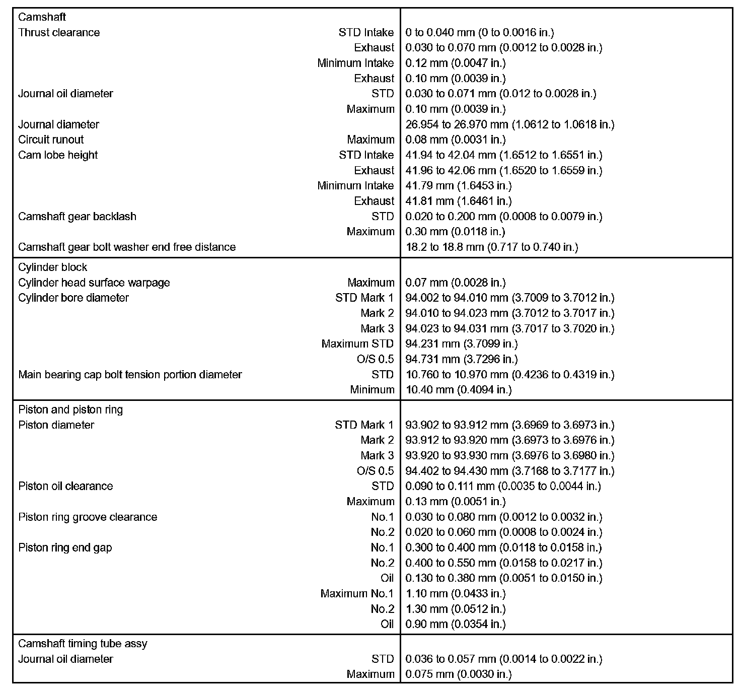 Engine Mechanical - Service Data Part 2: