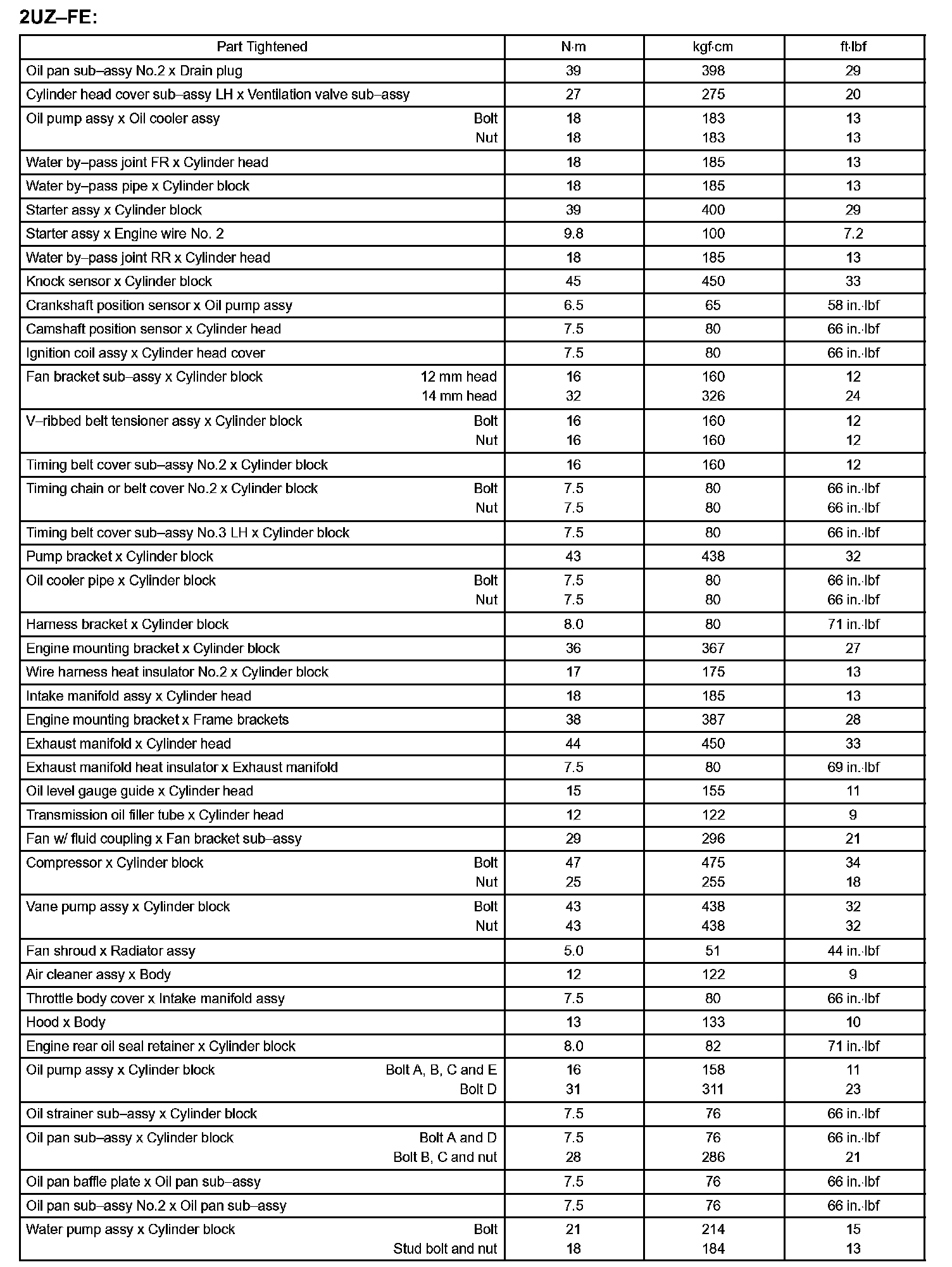 Engine Mechanical - Torque Specification Part 2: