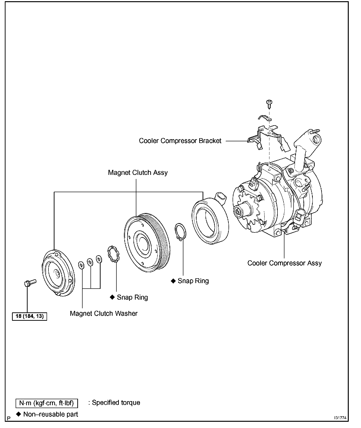 Torque: 18 N.m (183 kgf.cm, 13 ft.lbf)