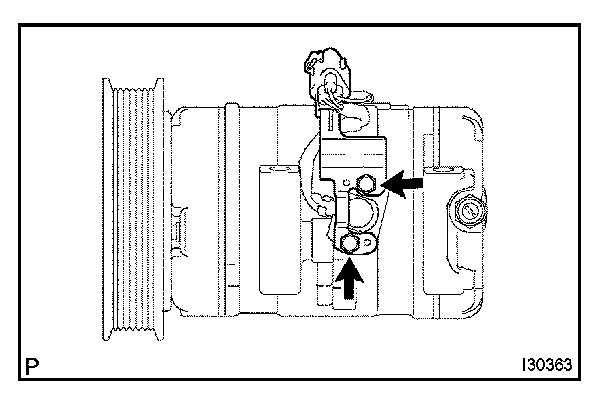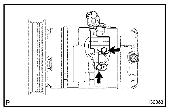 b. Sufficiently apply compressor oil to the new O-ring and fitting surface of the compressor and magnetic clutch.