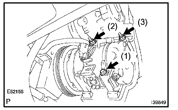a. Temporarily tighten the compressor and magnetic clutch with the 3 bolts.