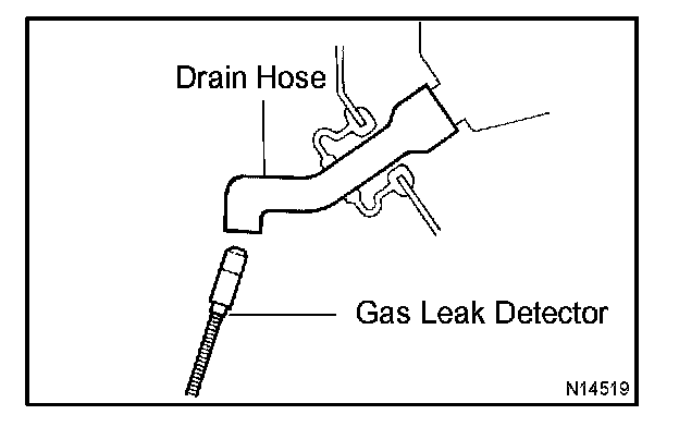b. Bring the gas leak detector close to the drain hose before performing the test.