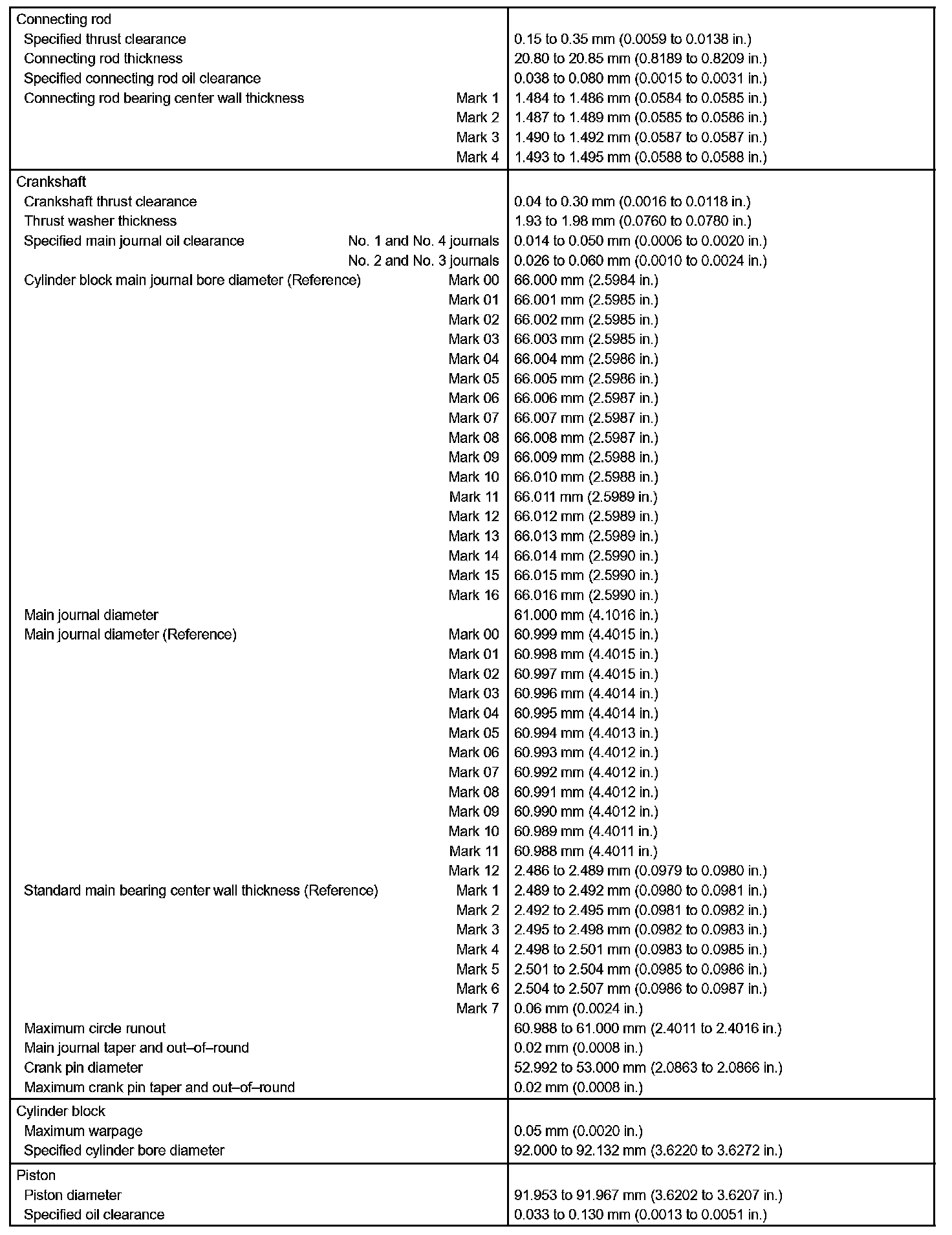 Engine Mechanical - Service Data Part 2: