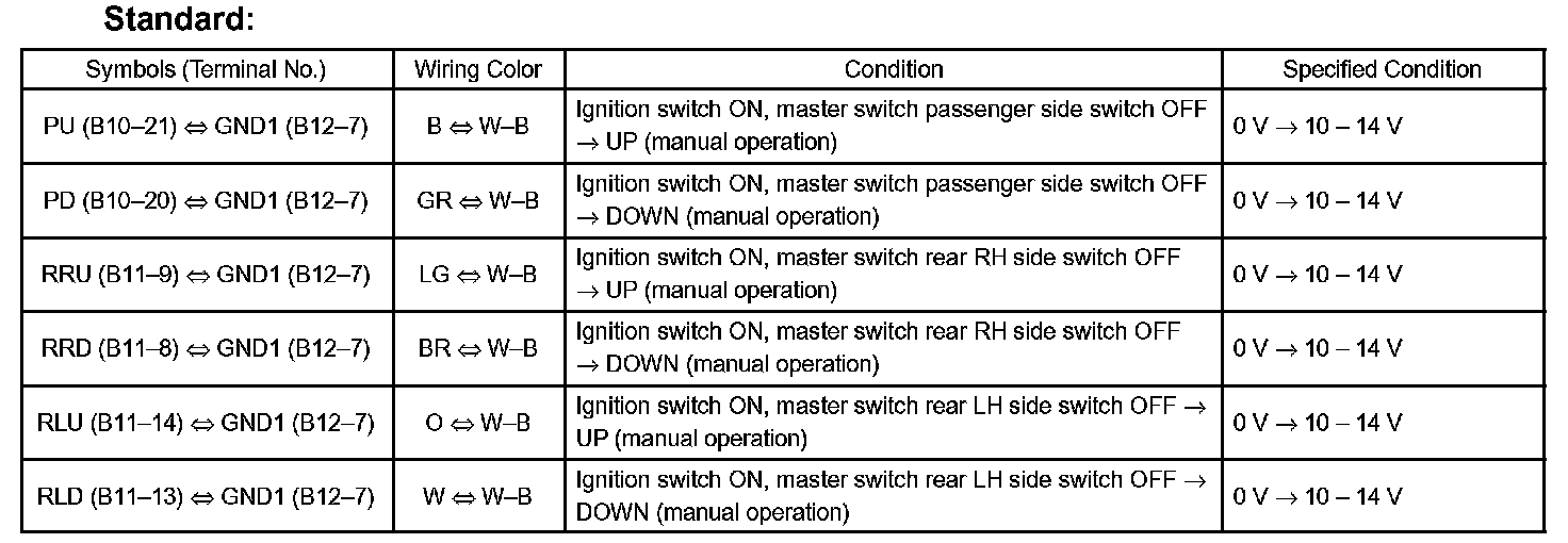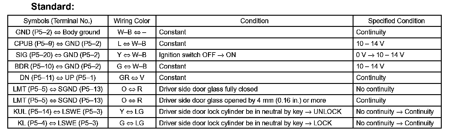 If the result is not as specified, the door ECU or communication line may malfunction.
