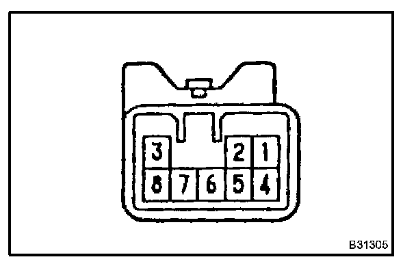 1. Check the continuity between the terminals when battery voltage is applied to terminals 1 and 8.