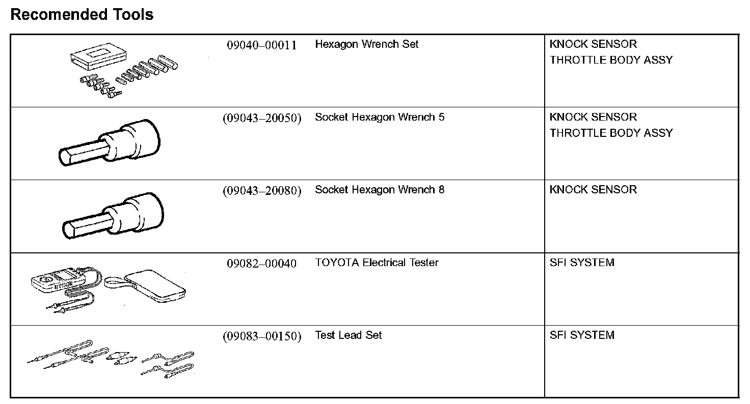 Engine Control System - Recommended Tools: